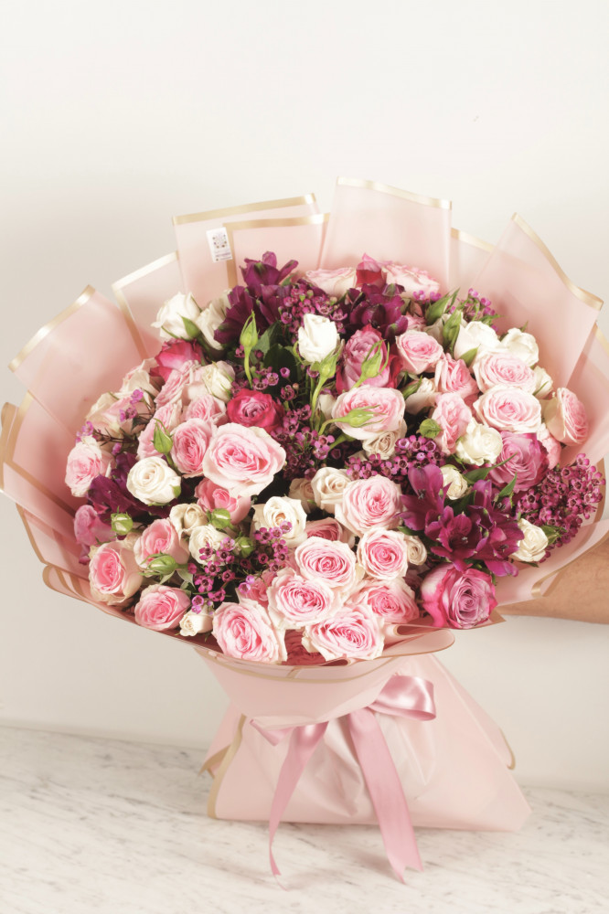استمتع بجمال الطبيعة وروعة الألوان مع باقة ورد وردي بيبي روز المصمم بأناقة وفخامة، والذي يجمع بين زهور البيبي روز الناعمة وزهور أخرى منتقاة بعناية لتشكيل باقة رومانسية تنبض بالحياة. هذا البوكيه مثالي كهدية تعبّر عن مشاعرك أو كقطعة تزيينية تضفي لمسة راقية على منزلك أو مكتبك.